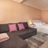 A kisebb, jobboldali apartmanban 3 személy szállásolható el. A lakrészt egyterű nappali és hálótér (160×200-as franciaággyal és 140×200-as ággyá nyitható sarokkanapéval), valamint külön nyíló konyha és fürdőszoba, illetve saját terasz alkotja.