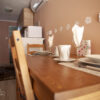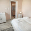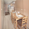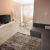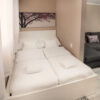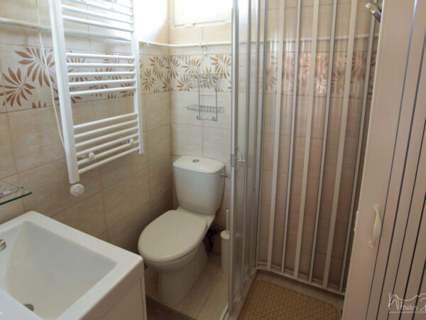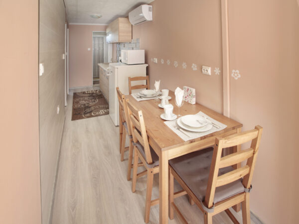 A nagyobb, baloldali apartmanban 4 személy szállásolható el. A lakrész rendelkezik egy különálló hálószobával (melyben egy 160×200-as franciaágy kapott helyet), továbbá egy sarokkanapés nappalival, melyhez egy pengefallal elválasztott hálófülke tartozik (140×200-as franciaággyal), valamint konyhával és fürdőszobával, illetve saját terasszal.
