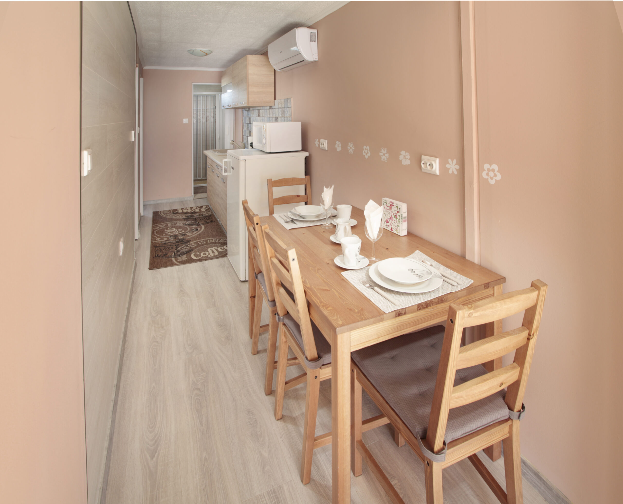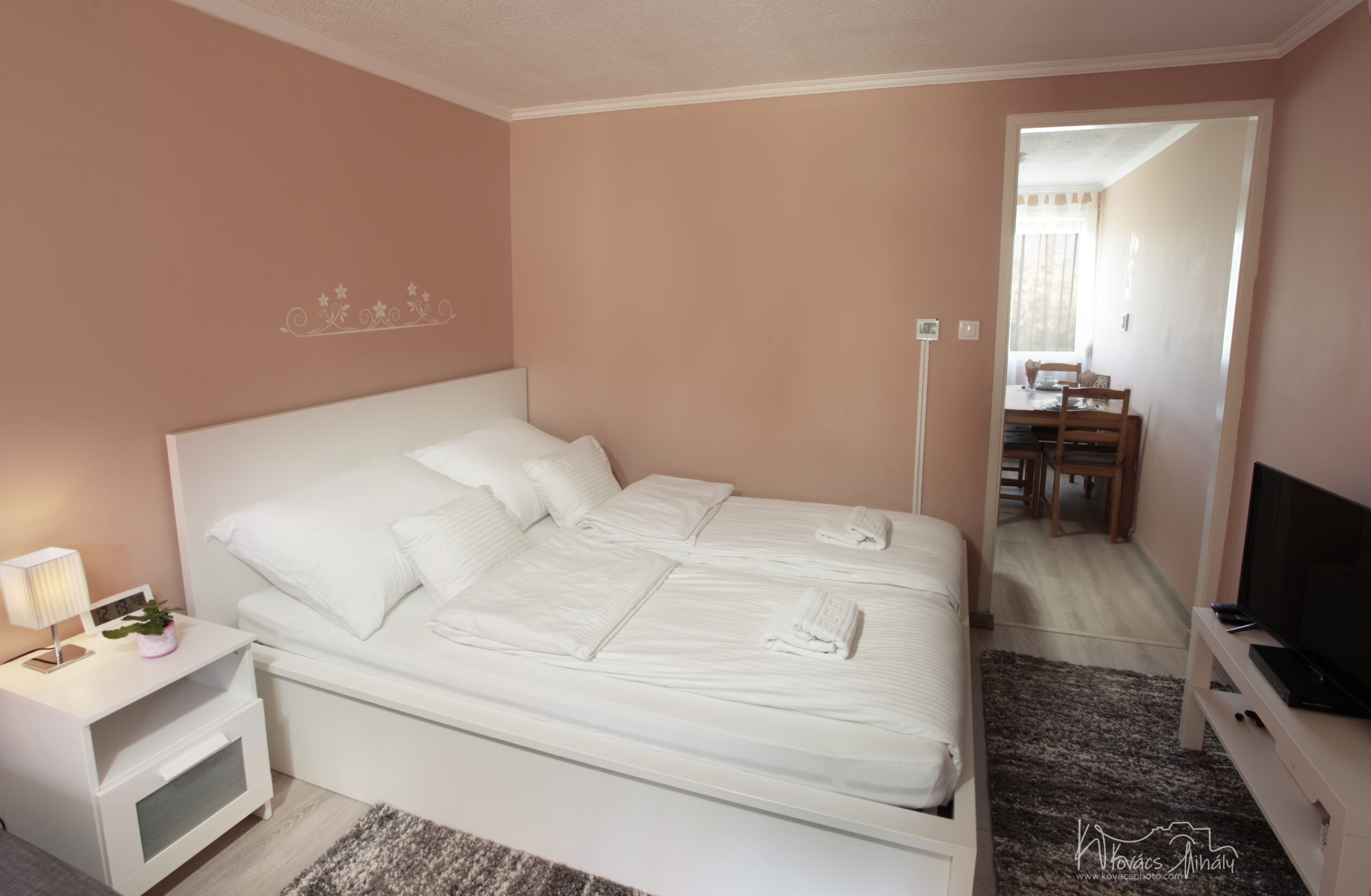 A nagyobb, baloldali apartman 4 személy fogadására alkalmas.